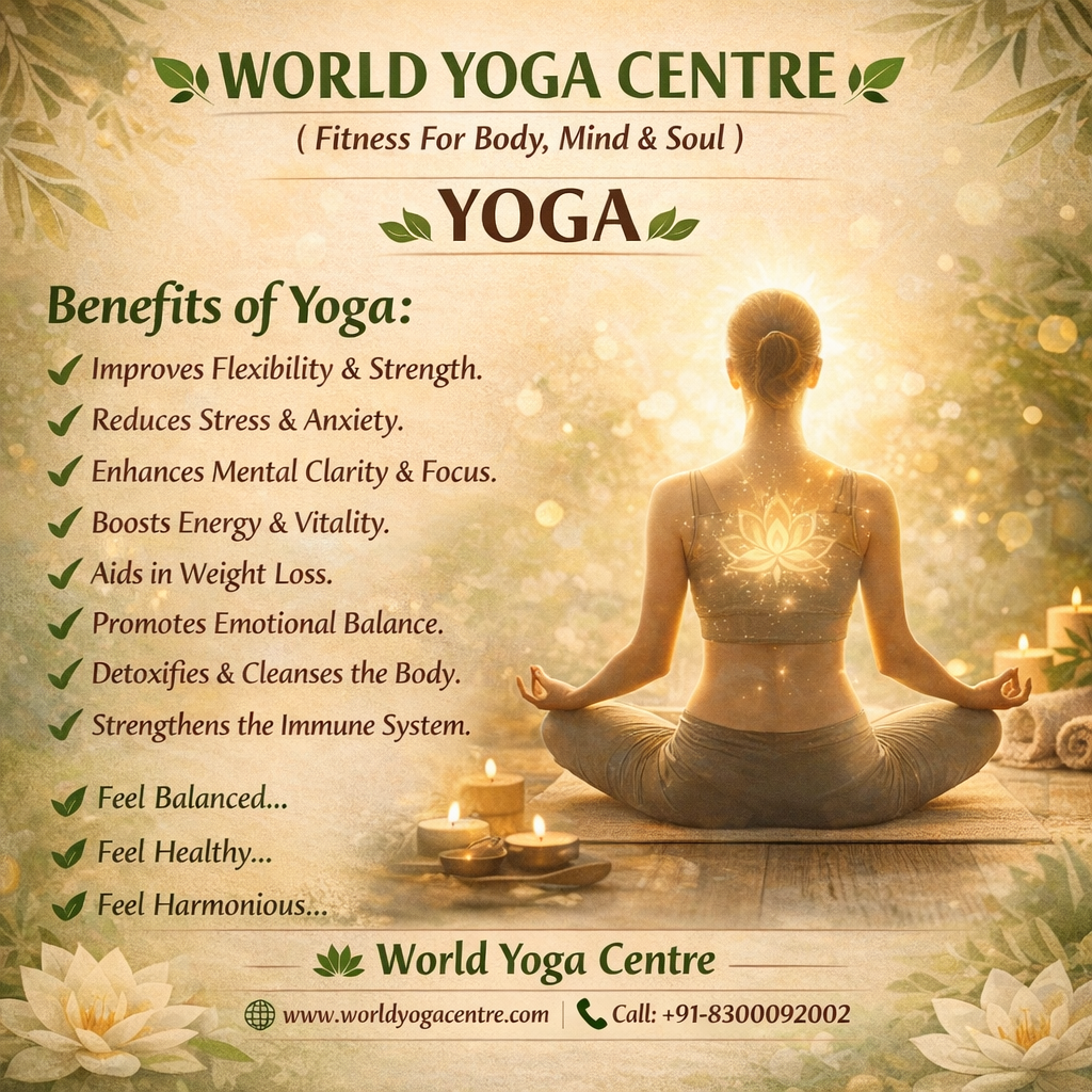 World Yoga centre as a disciplined method for attaining a goal,Yoga, as techniques of controlling the body and the mind .Yoga, as a name of one of the schools or systems of philosophy Yoga, in connection with other words, such as “hatha, mantra-, and laya-,” referring to traditions specialising in particular techniques of yoga;Yoga, as the goal of Yoga practice.